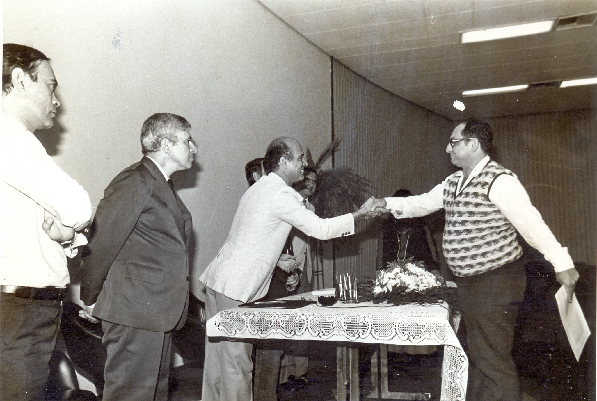 Formatura do Curso Especial de Administração para Desenvolvimento de Executivos (CEADE) da Eletrobras. Vê-se a partir da esuqerda Carlos Jorge Magalhães Ferreira; Lauro Otávio Lacerda de Almeida, coordenador executivo do CEADE/Eletrobras; Luciano Amorim Borges e um aluno.