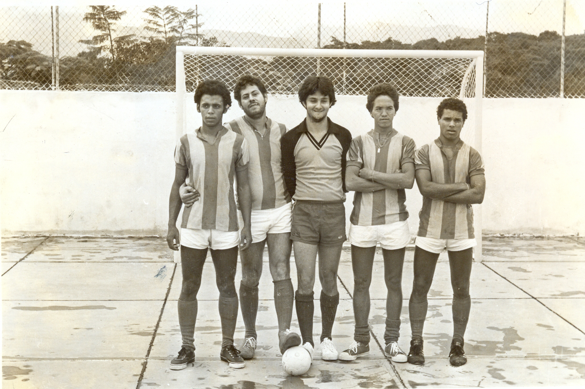 Time de futebol de salão da Divisão de Planejamento e Controle Financeiro (DPCF) que no dia 30 de abril conquistou o troféu do Torneio de Futebol de Salão da Associação dos Empregados da Fundação João Pinheiro (AE/FJP). A partir da esquerda: Jorge Eduardo da Silva; Francisco Eustáquio Mendes; José Ribamar Coelho; Geraldo Luiz da Costa e Nilson Rodrigues de Souza.