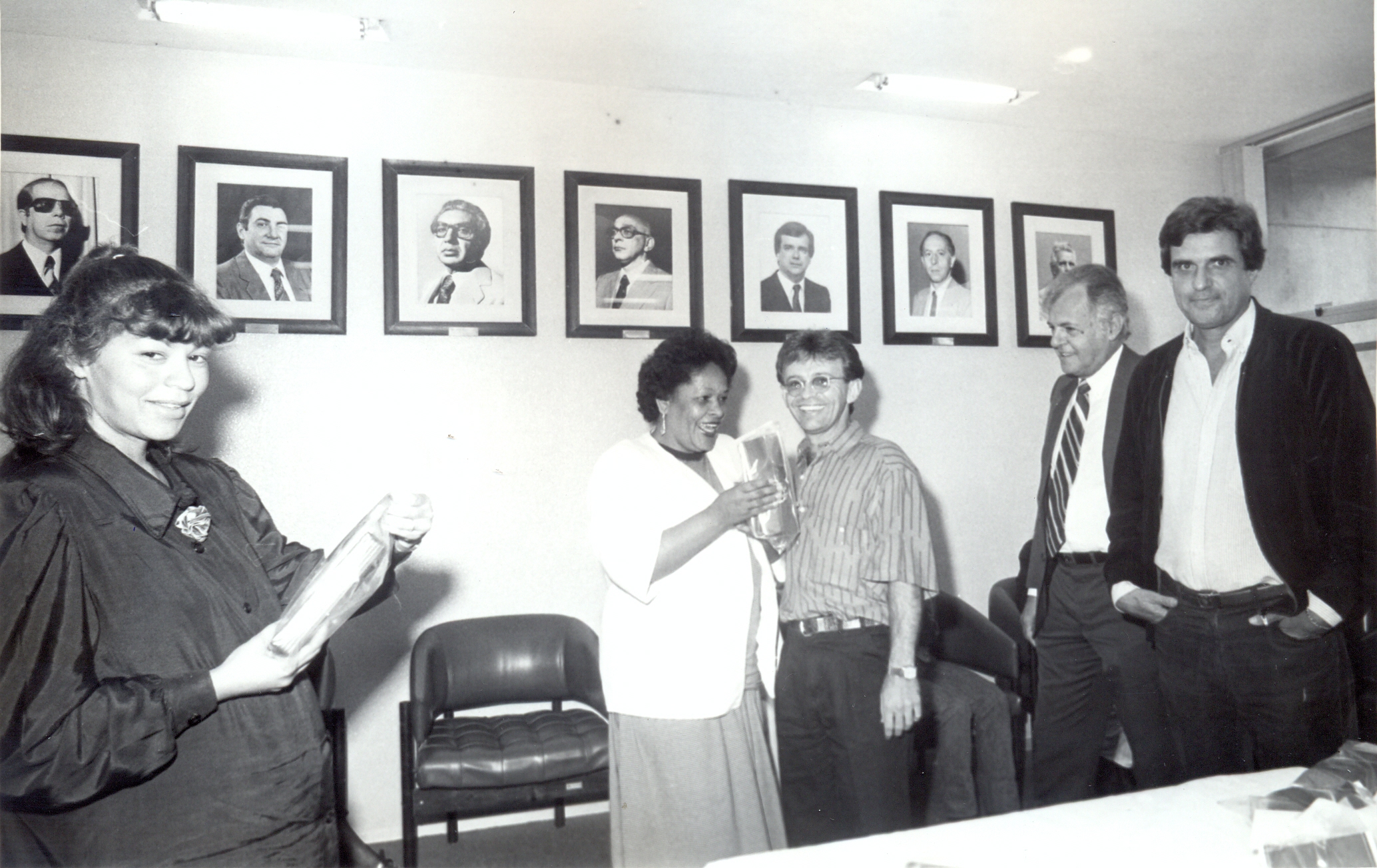 Comemoração do “Dia da Secretária”. Vê-se a partir da esquerda: Rosângela Gomes Garcia, da assessoria de comunicação; Alzerice Eduvirgens Cardoso Tomáz; Vinícius Márcio Horta, Sérgio Domingues França e Antônio Luiz Villaça Mendes, superintendente.