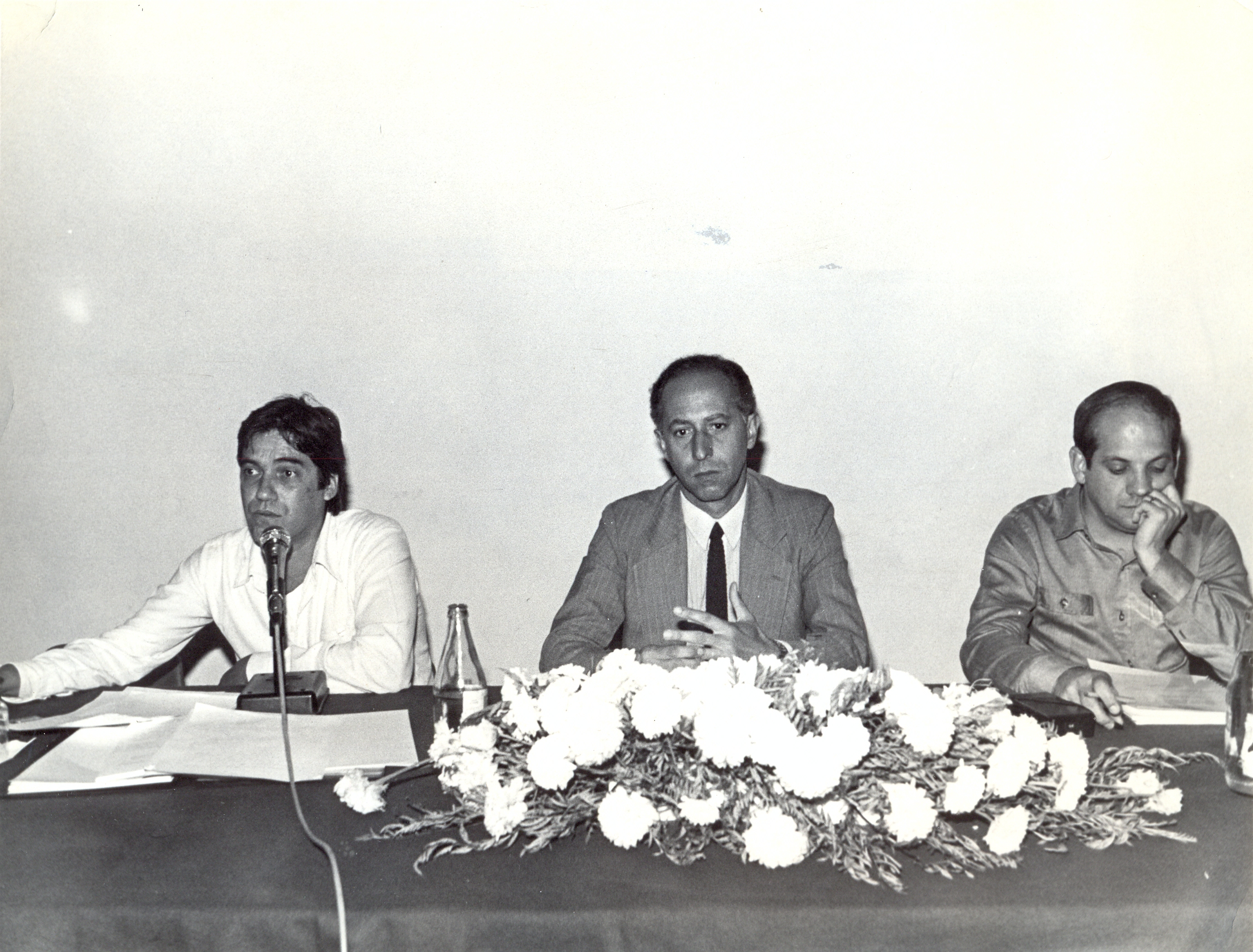 ConferĂȘncia Regional Latino-Americana promovida pela Fundação JoĂŁo Pinheiro sob o patrocĂnio da UniĂŁo GeogrĂĄfica Internacional (UGI), Universidade Federal do Rio de Janeiro (UFRJ) e a Secretaria de Planejamento de Minas Gerais (SEPLAN-MG). A partir da esquerda vĂȘ-se: Luiz Aureliano Gama de Andrade, AntĂŽnio Augusto Pereira Prates, Carlos MaurĂcio de Carvalho Ferreira, CĂ©sar Manoel de Medeiros, todos da Fundação.