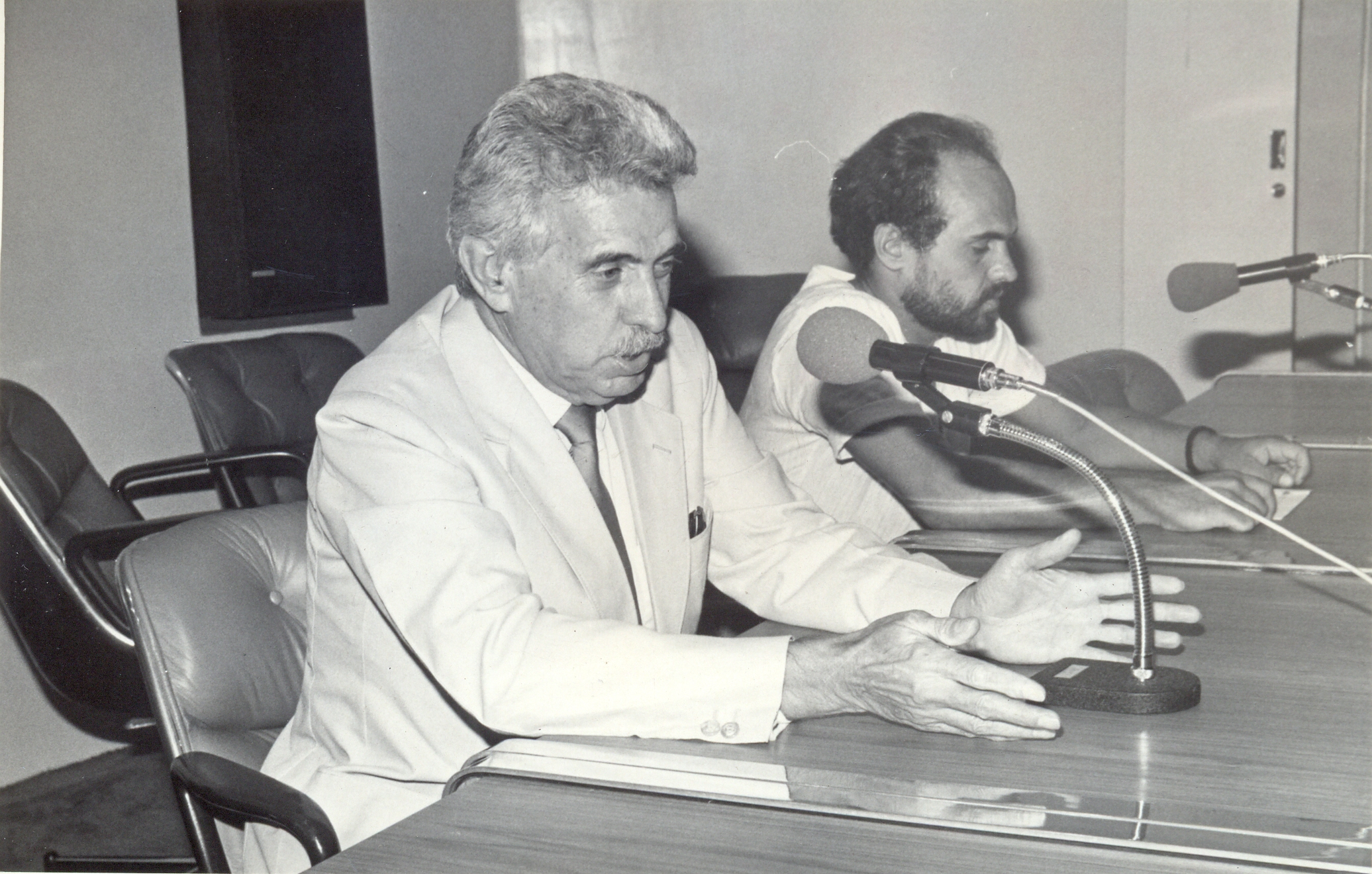 I Semana Interna de Prevenção de Acidentes do Trabalho (I SIPAT), realizada no auditório da Minas Caixa, de 13 a 17 de fevereiro, promovida pela Comissão Interna de Prevenção de Acidentes (CIPA) da Fundação João Pinheiro (FJP). Vê-se a partir da esquerda: Aluísio Pimenta, presidente da FJP e Cláudio Moreira da Silva, presidente da CIPA/FJP.