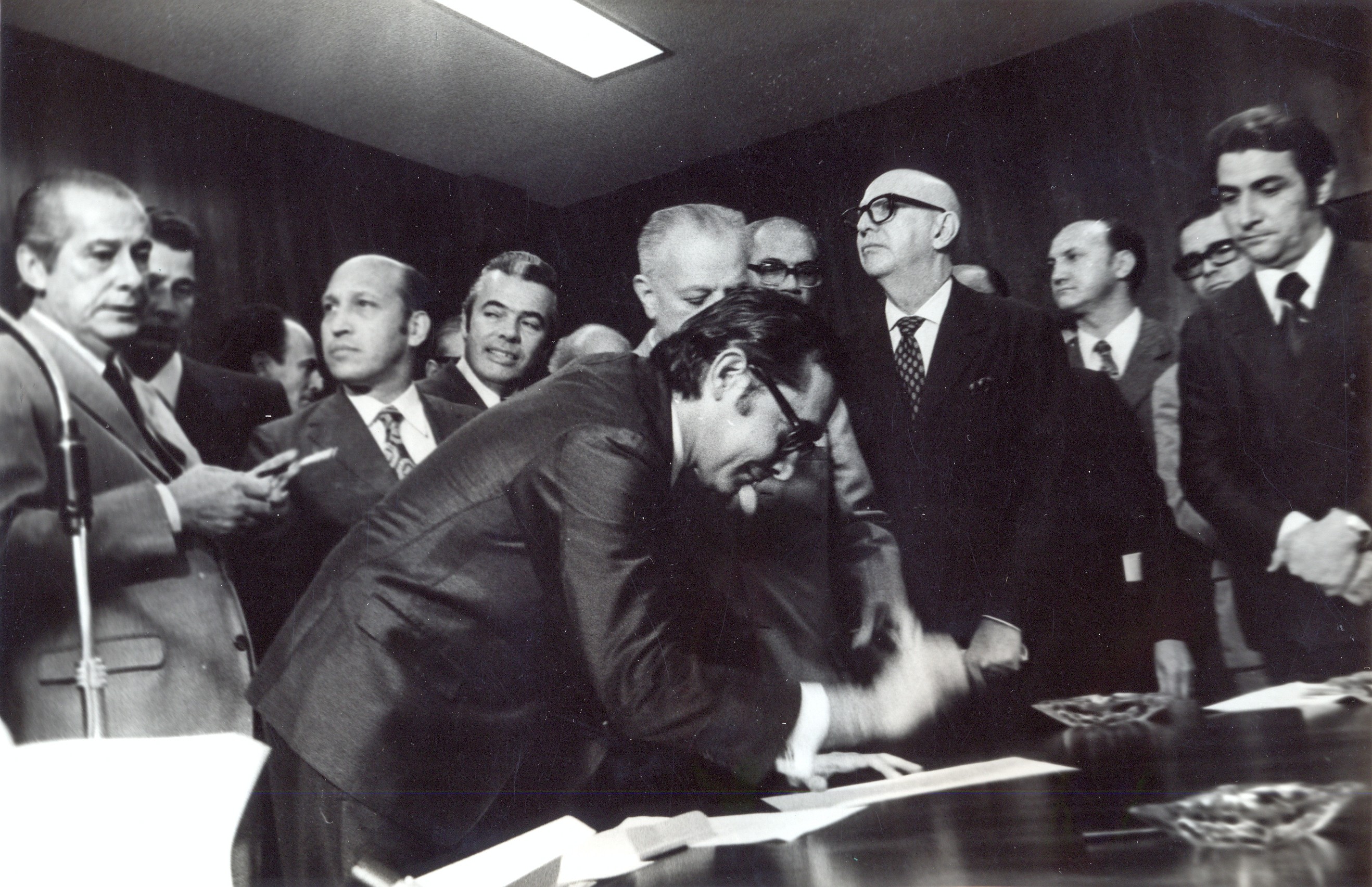 | dc.description | Assinatura do convênio entre o Ministério do Planejamento e a Fundação João Pinheiro (FJP), para execução de projetos de treinamento para altos executivos, como parte do "Programa Nacional de Treinamento de Executivos" (PNTE), criado pelo Ministério do Planejamento. Vê-se o ministro do planejamento, João Paulo dos Reis Veloso, assinava, e à direita, o presidente da Fundação João Pinheiro (FJP) Luis de Oliveira Castro. | pt_BR |