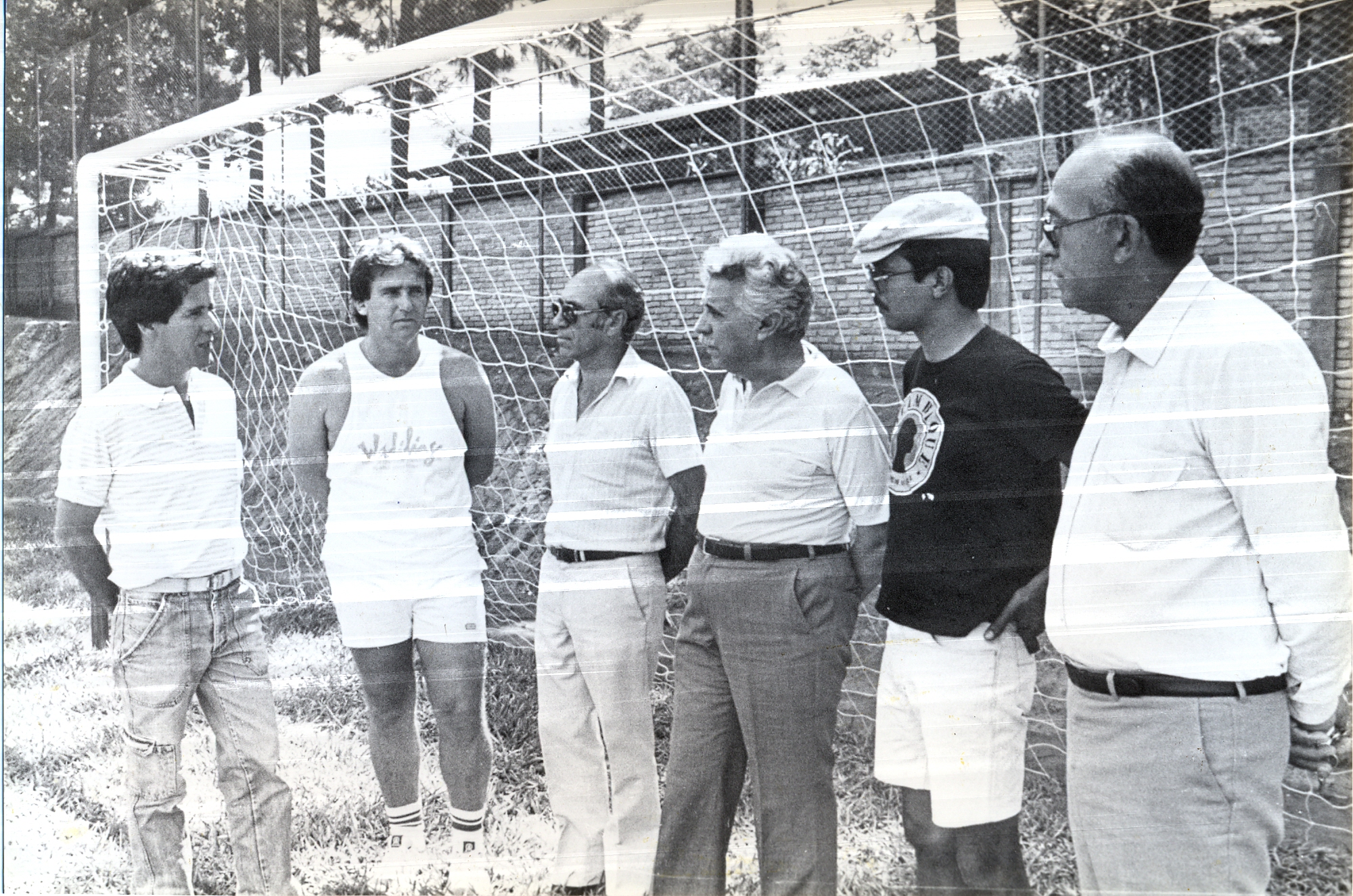 Inauguração da Quadra Poliesportiva da área recreativa da Associação de Empregados da Fundação João Pinheiro, em 30 de março de 1985. Vê-se, da esquerda para a direita, Dileni Campos da Silva (1º); Rogério Cesar Franco Matos (2º); João Alves Almada (3º); Aluísio Pimenta (4º).