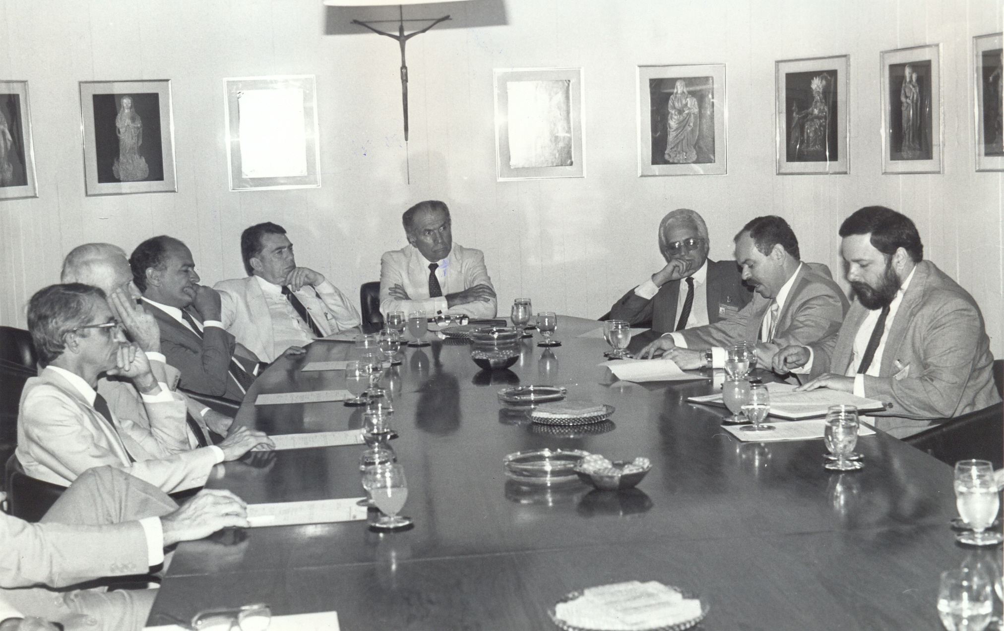 Palestra do presidente da FJP, Aluízio Gonçalves Werneck, no Centro das Indústrias do Estado de Minas Gerais (CIEMG). Vê-se a sua esquerda João Luiz Traverso Gonçalves, assessor de comunicação da Fundação João Pinheiro (FJP).