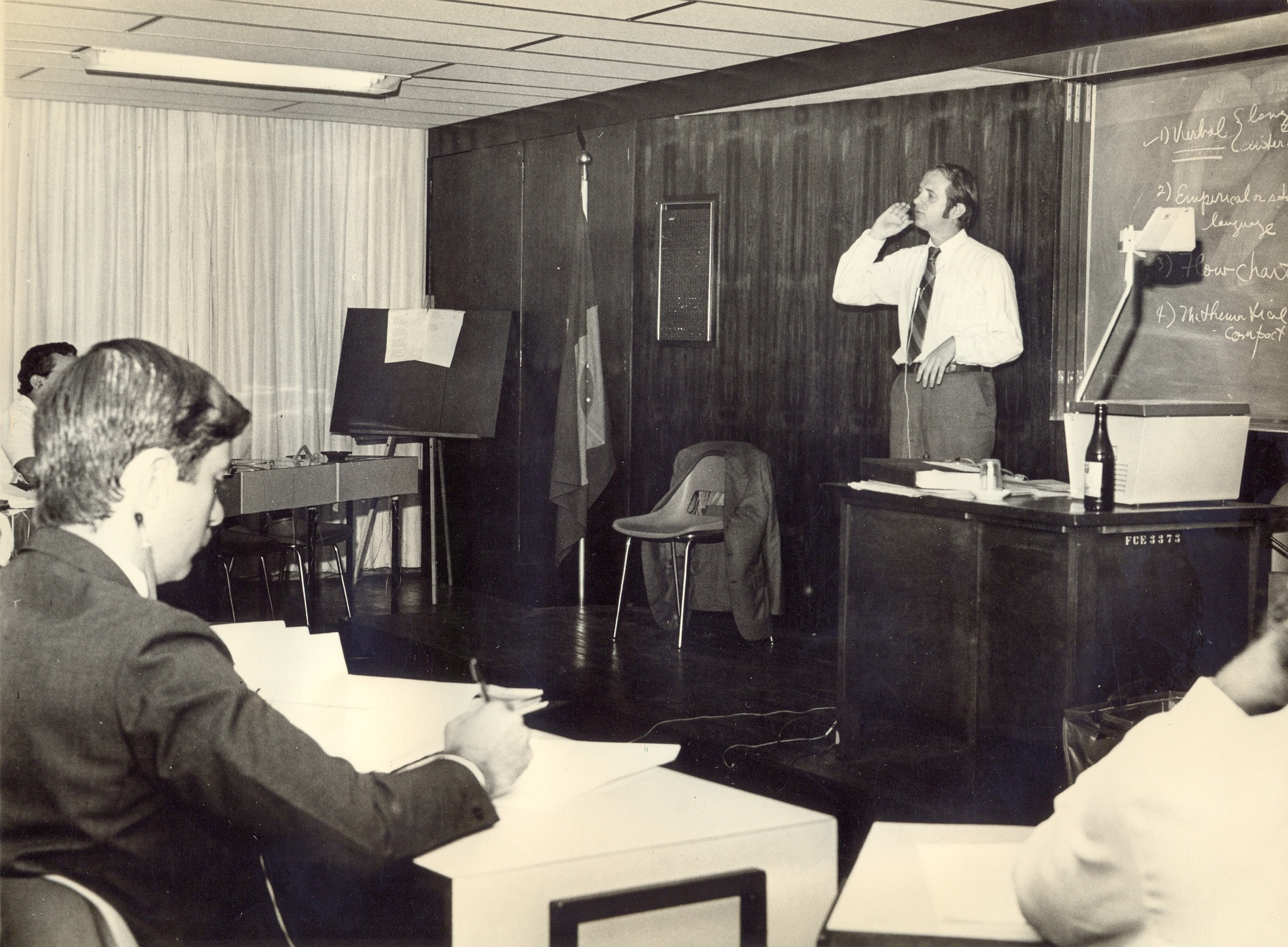 [John U Farley, professor do CDA, ministrando aula]