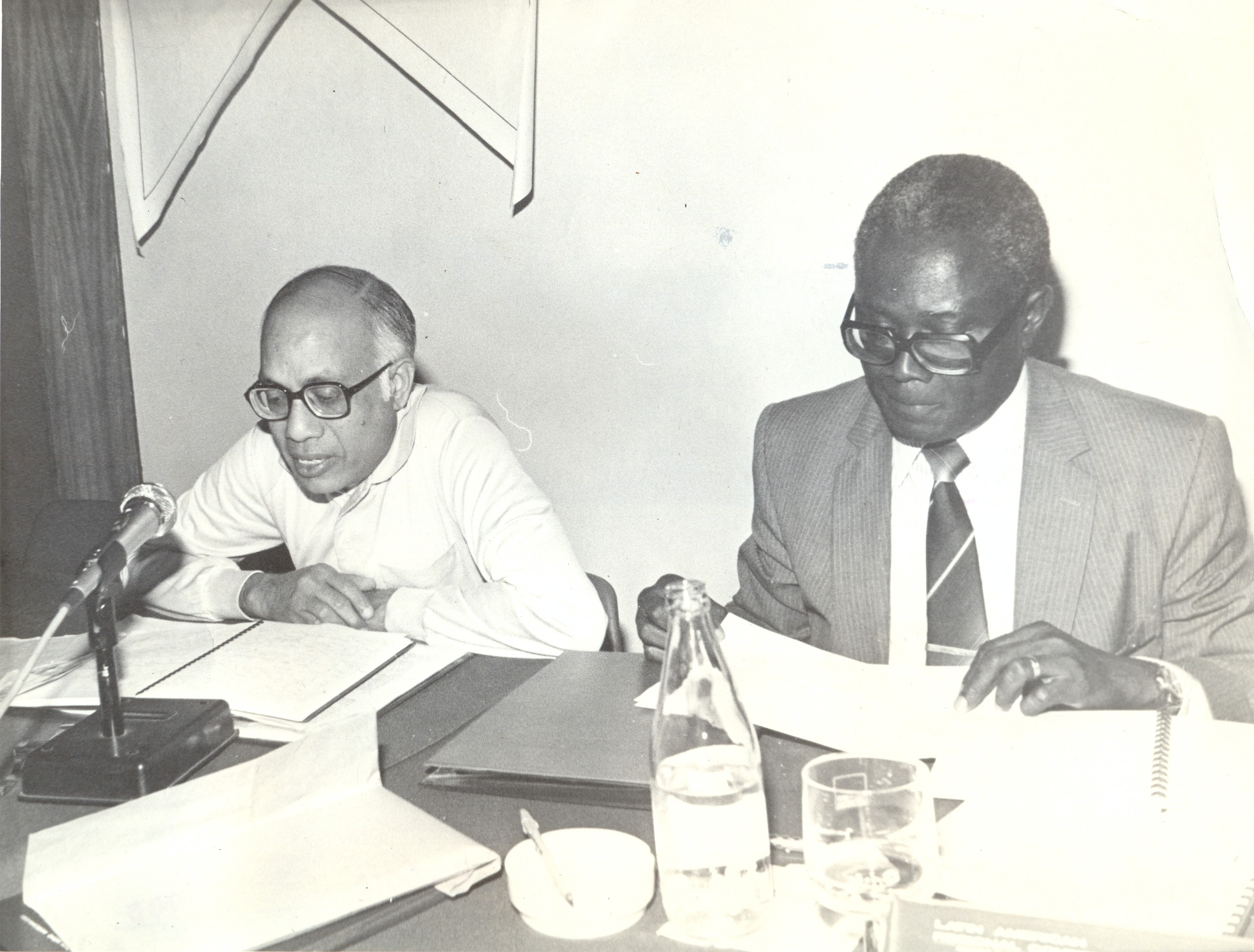 ConferĂȘncia Regional Latino-Americana promovida pela Fundação JoĂŁo Pinheiro (FJP) sob o patrocĂnio da UniĂŁo GeogrĂĄfica Internacional (UGI), Universidade Federal do Rio de Janeiro (UFRJ) e a Secretaria de Planejamento de Minas Gerais (SEPLAN-MG). A partir da esquerda vĂȘ-se: Om Prakash Mathur do United Nations Centre for Regional Develpment (UNCRD), JapĂŁo; Akin L. Mabogunge, da Universidade de Ibadan, NigĂ©ria.
