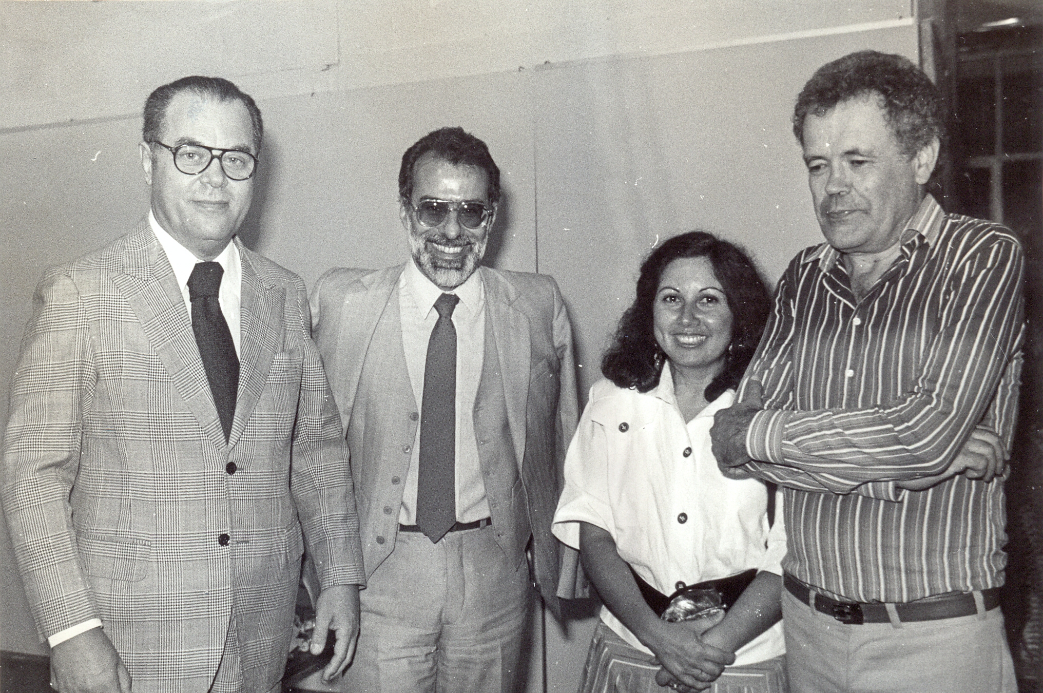 Festa de natal dos funcionários da Fundação João Pinheiro (FJP), no Centro em Desenvolvimento em Administração (CDA). Vê-se à partir da esquerda, Hindemburgo Chateaubriand Pereira Diniz, presidente da FJP; Carlos Eduardo Côdo Aroeira, Georgina Alves Vieira da Silva e Jayme Tobias Blay.