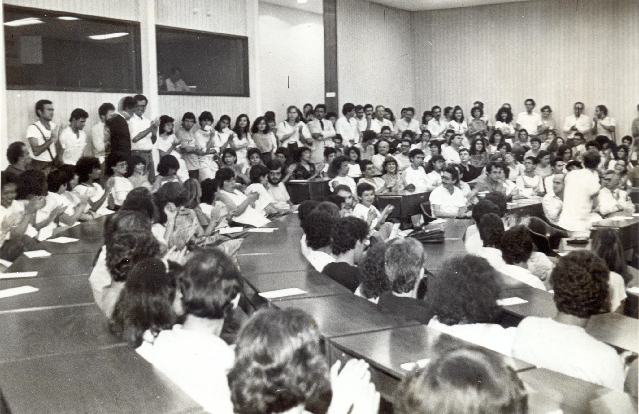 Festa de Natal dos funcionários da Fundação João Pinheiro (FJP), realizada no Centro de Desenvolvimento em Administração (CDA). Vê-se no auditório, a apresentação da Orquestra de Câmera da Fundação Cultural de Belo Horizonte (FUNDAC).