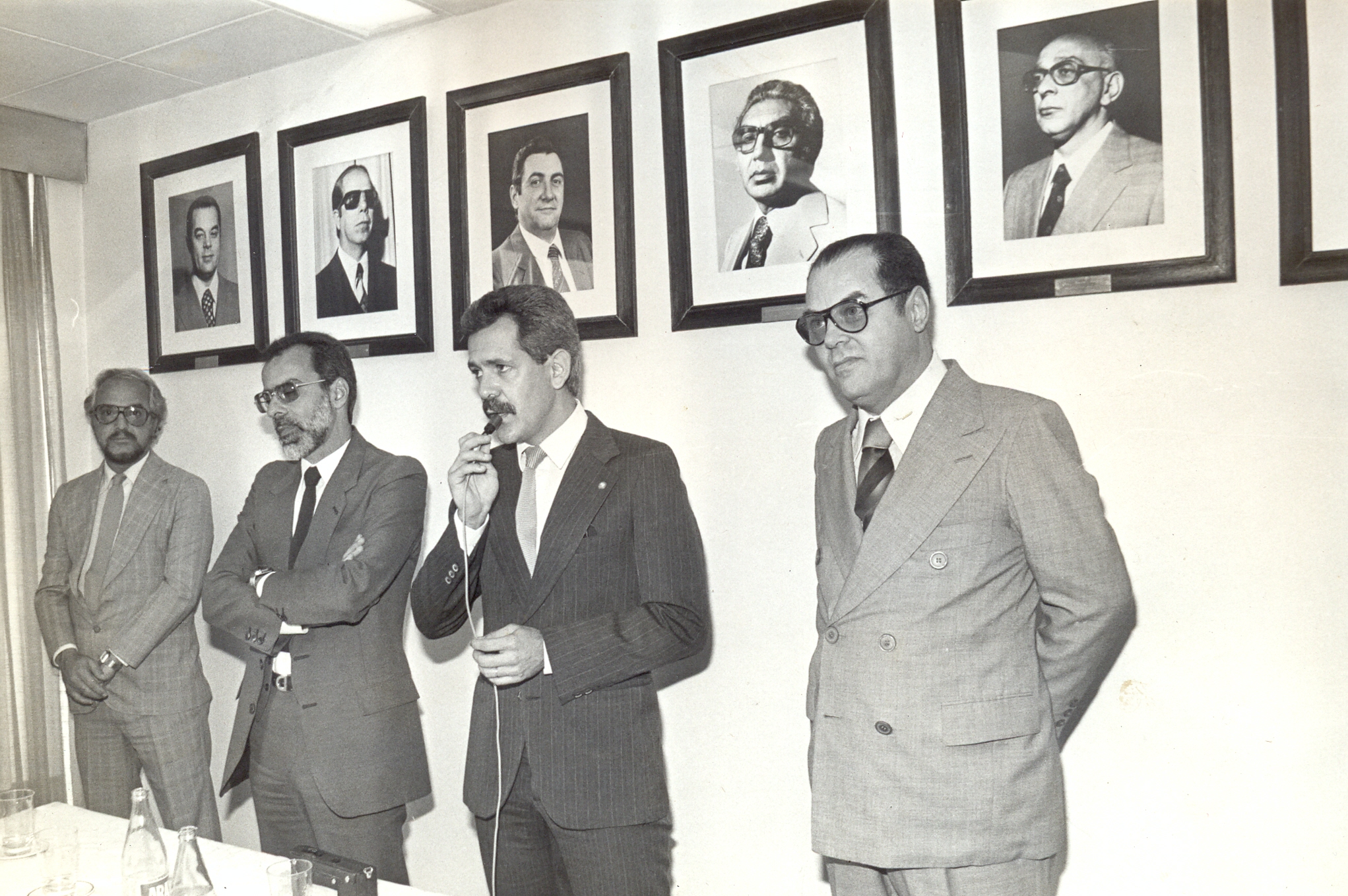Solenidade de transmissão do cargo de presidente da Fundação João Pinheiro (FJP), para Hindemburgo Chateaubriand Pereira Diniz por Carlos Eduardo Côdo Aroeira, presidente em exercício. Vê-se a partir da esquerda: Plínio Carneiro, Assessor de Comunicação; Carlos Eduardo Côdo Aroeira; Luiz Alberto Rodrigues, Secretário Estadual do Planejamento e Hindemburgo Chateaubriand Pereira Diniz.