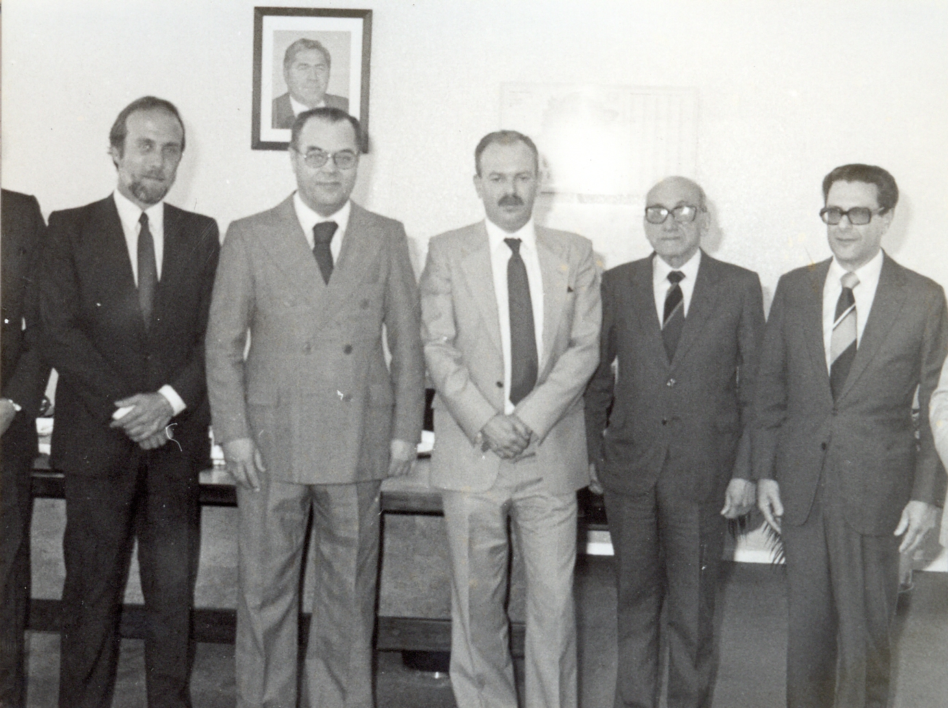 Inauguração do retrato de Hindemburgo Chateaubriand Pereira Diniz, na galeria de retratos dos ex-presidentes, no salão do conselho curador da Fundação João Pinheiro (FJP). Vê-se Fernando Oliveira de Sá Andrade; Hindemburgo Chateaubriand Pereira Diniz; Aluízio Gonçalves Werneck, presidente da FJP; Pio Soares Canedo e Celso de Azevedo Andrade.
