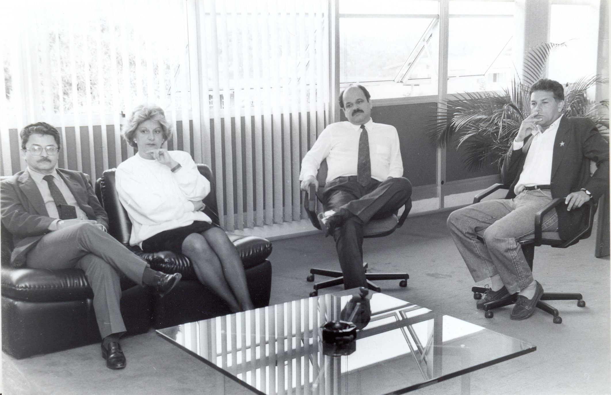 Ciclo de debates “A Sucessão Mineira e os Desafios da Modernidade”, promovido pela Fundação João Pinheiro (FJP), com o apoio do Diário do Comércio e da TV Minas. Contou com a participação dos candidatos ao governo de Minas Gerais, que expuseram suas propostas e metas para o Estado. Vê-se a partir da esquerda, Amilcar de Oliveira, Mirna Dayrell Xavier Segantini, diretores da FJP; Roberto Gonçalves Pereira, presidente da FJP e o candidato Virgílio Guimarães de Paula.