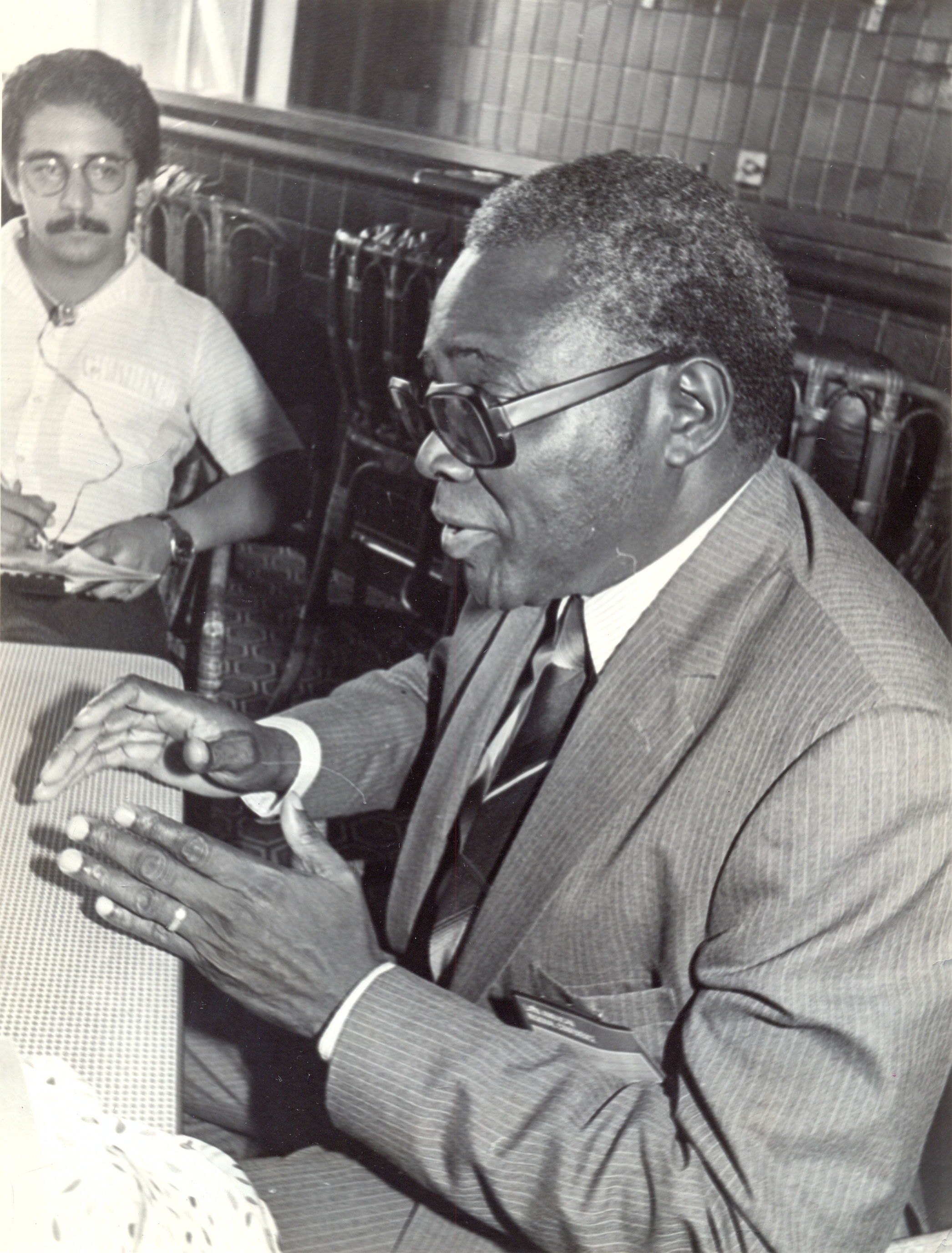 Akin L. Mabogunge, da Universidade de Ibadan, NigĂ©ria e atual presidente da UniĂŁo GeogrĂĄfica Internacional (UGI), concedida entrevista Ă imprensa durante a ConferĂȘncia Regional Latino-Americana promovida pela Fundação JoĂŁo Pinheiro (FJP).