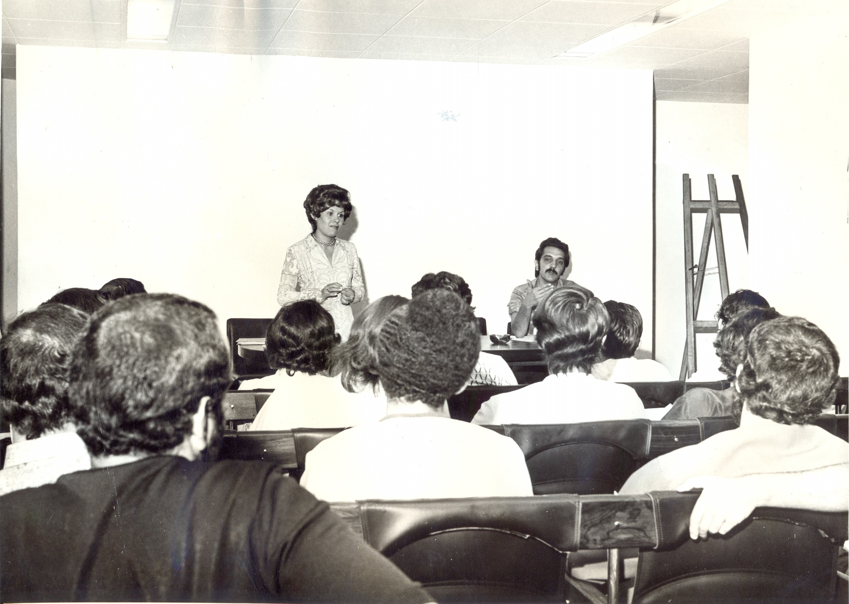Curso intensivo de técnicas de entrevista e abordagem, ministrado pela professora Maria José Lara de Bretas Pereira, promovido pela Fundação João Pinheiro (FJP), em convênio com a Eletrobras, governo de Minas Gerais e Companhia Energética de Minas Gerais (CEMIG). Vê-se também Fernando Antônio de Vasconcelos Lana e Souza.