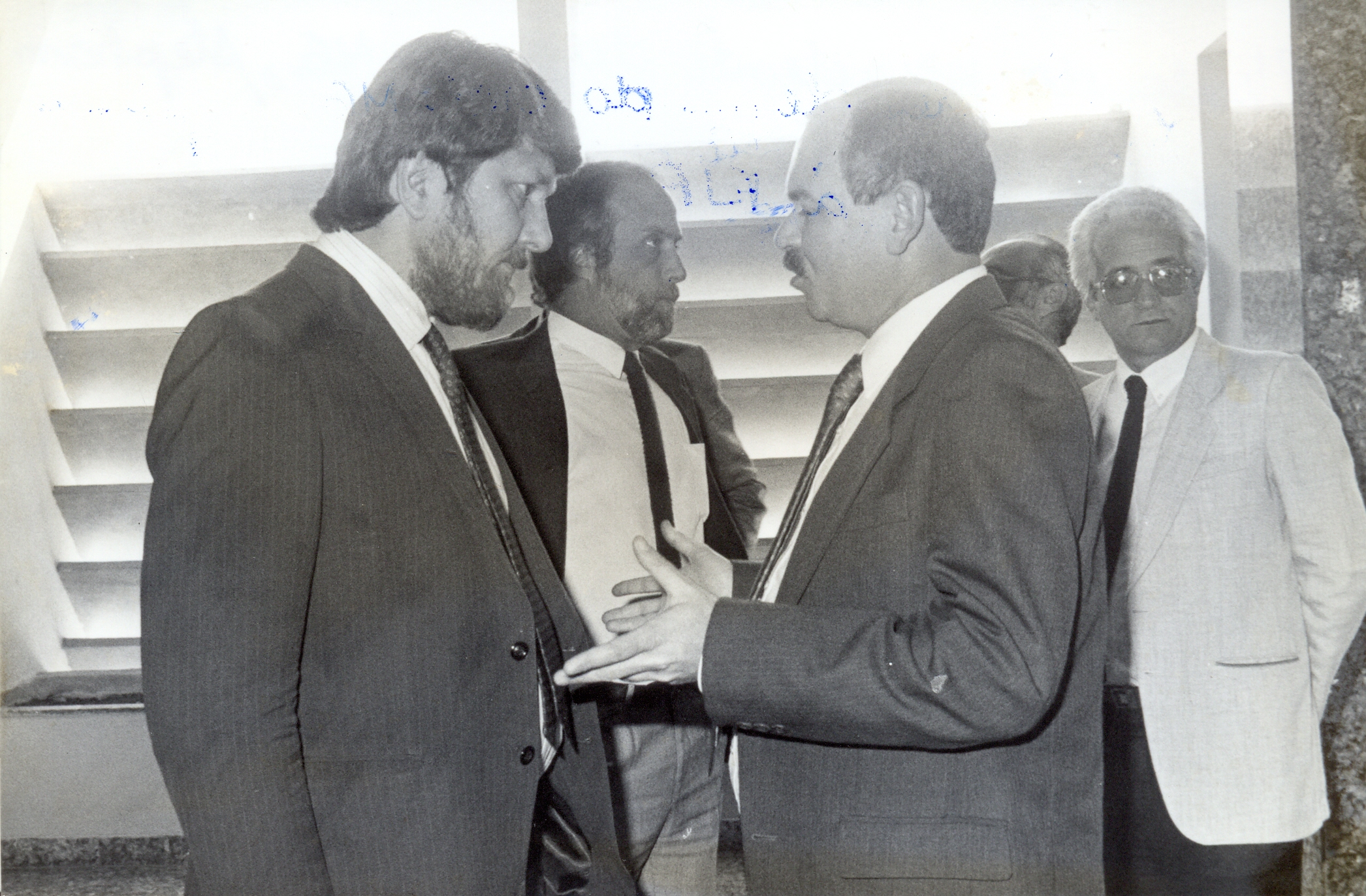 Visita do presidente do Centro das Indústrias das Cidades Industriais de Minas Gerais (CICI/MG), Stefan Bogdan Salej, à Fundação João Pinheiro (FJP). Vê-se a partir da esquerda: Stefan Bogdan Salej, Fernando Oliveira de Sá Andrade; Aluízio Gonçalves Werneck, presidente da FJP e Ildeu da Silveira e Silva, diretor da FIEMG.