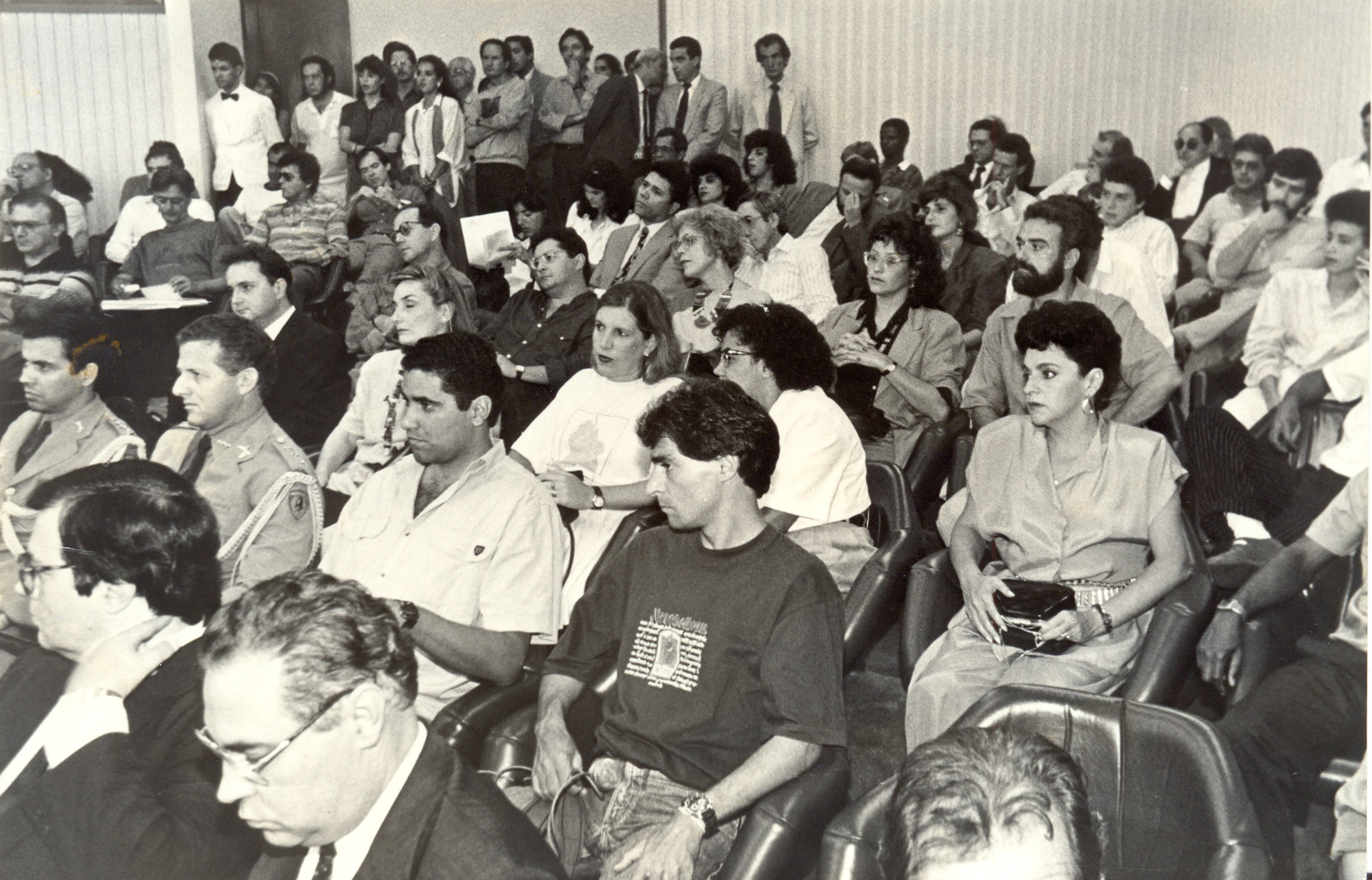 Solenidade comemorativa dos 20 anos da Fundação João Pinheiro, presidida pelo governador Newton Cardoso, no auditório da FJP. Vê-se parte da plateia.