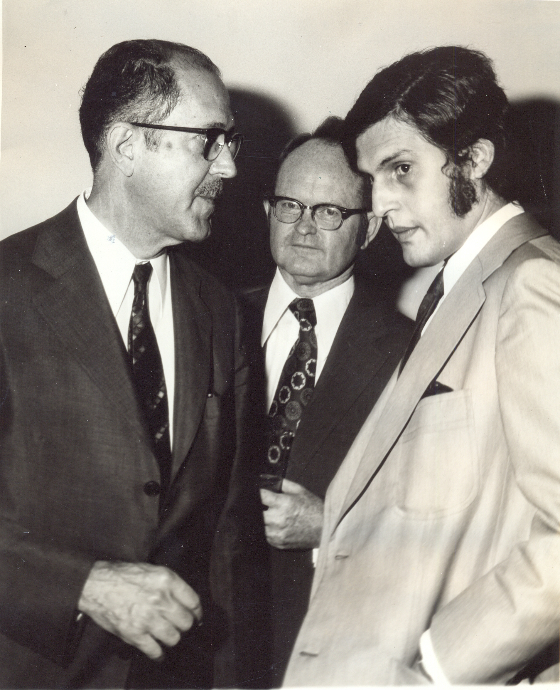 O secretário do planejamento Paulo José de Lima Vieira, o coordenador dos cursos da Universidade de Columbia, Garland Chester Owens e o subsecretário do planejamento Roberto Lúcio Rocha Brant, por ocasião da inauguração do prédio do Centro de Desenvolvimento em Administração (CDA), na Pampulha.