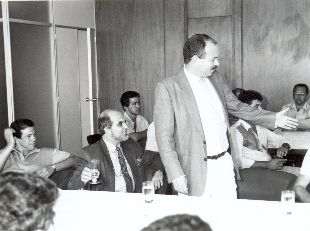 Almoço com os prefeitos da Associação Micro Regional de Municípios do Médio Rio Doce (ARDOCE), por ocasião da reunião sobre “Plano diretor e modernização administrativa”, promovida pelo Centro de Estudos Políticos e Sociais (CEPS), da Fundação João Pinheiro (FJP), na FJP. Vê-se: Aluízio Gonçalves Werneck, presidente da FJP; em pé, à sua direita, assentado, Heraldo Santos Dutra, gerente técnico do CEPS, e prefeitos.