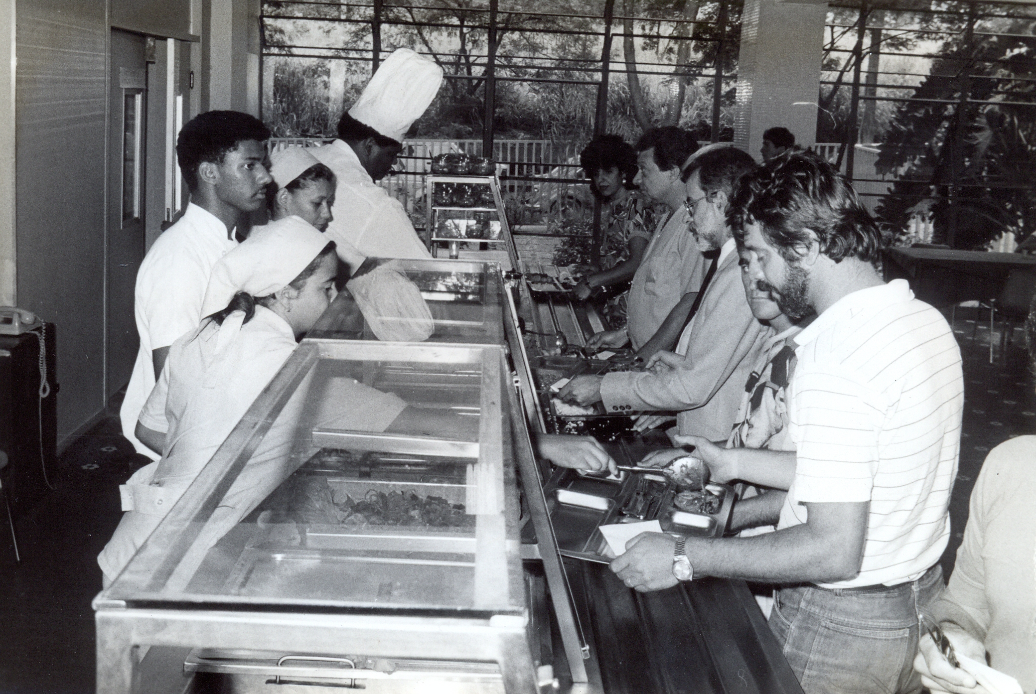 Inauguração do restaurante da Fundação João Pinheiro (FJP). Vê-se funcionários na fila do bandejão.