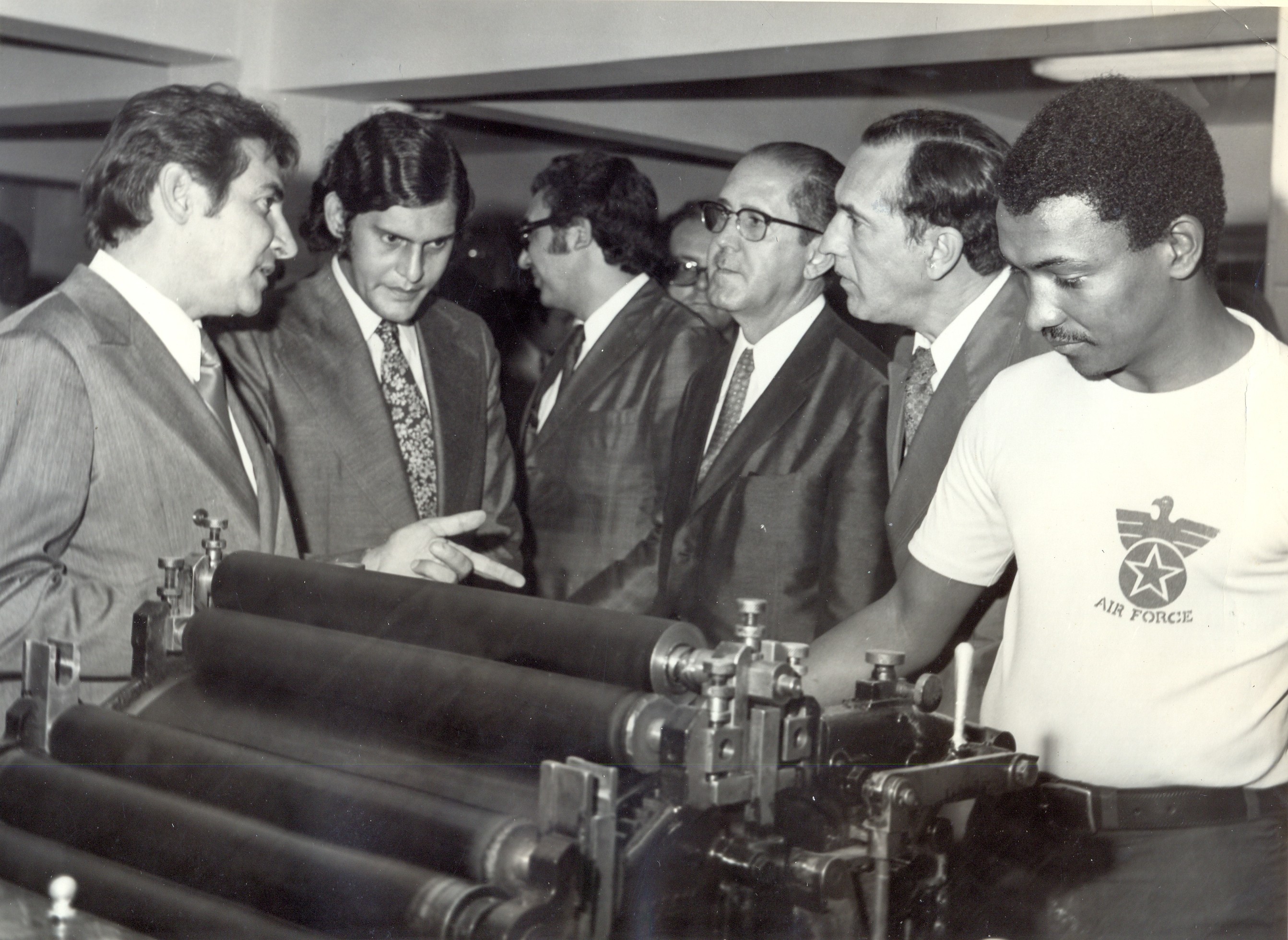 Inauguração da gráfica da Fundação João Pinheiro (FJP), com a presença do presidente, Luis de Oliveira Castro; do subsecretário de planejamento, Roberto Lúcio Rocha Brant; Clodoaldo da Cunha Bonfim, Paulo José de Lima Vieira, secretário do planejamento e vários diretores da Fundação João Pinheiro (FJP) e do Centro Tecnológico de Minas Gerais (CETEC).