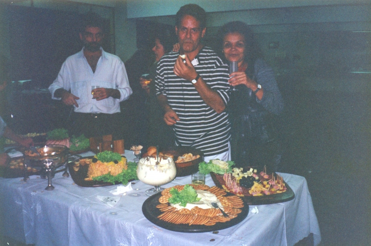 Lançamento de nova edição do Jornal “Catraca”, no restaurante da Fundação João Pinheiro (campus Pampulha). Vê-se, da esquerda para a direita, Eduardo Teixeira Leite (1º); Maria de Fátima Cunha (2º); Francisco Eustáquio Mendes (3º); Neuza Santiago Lima (4º).