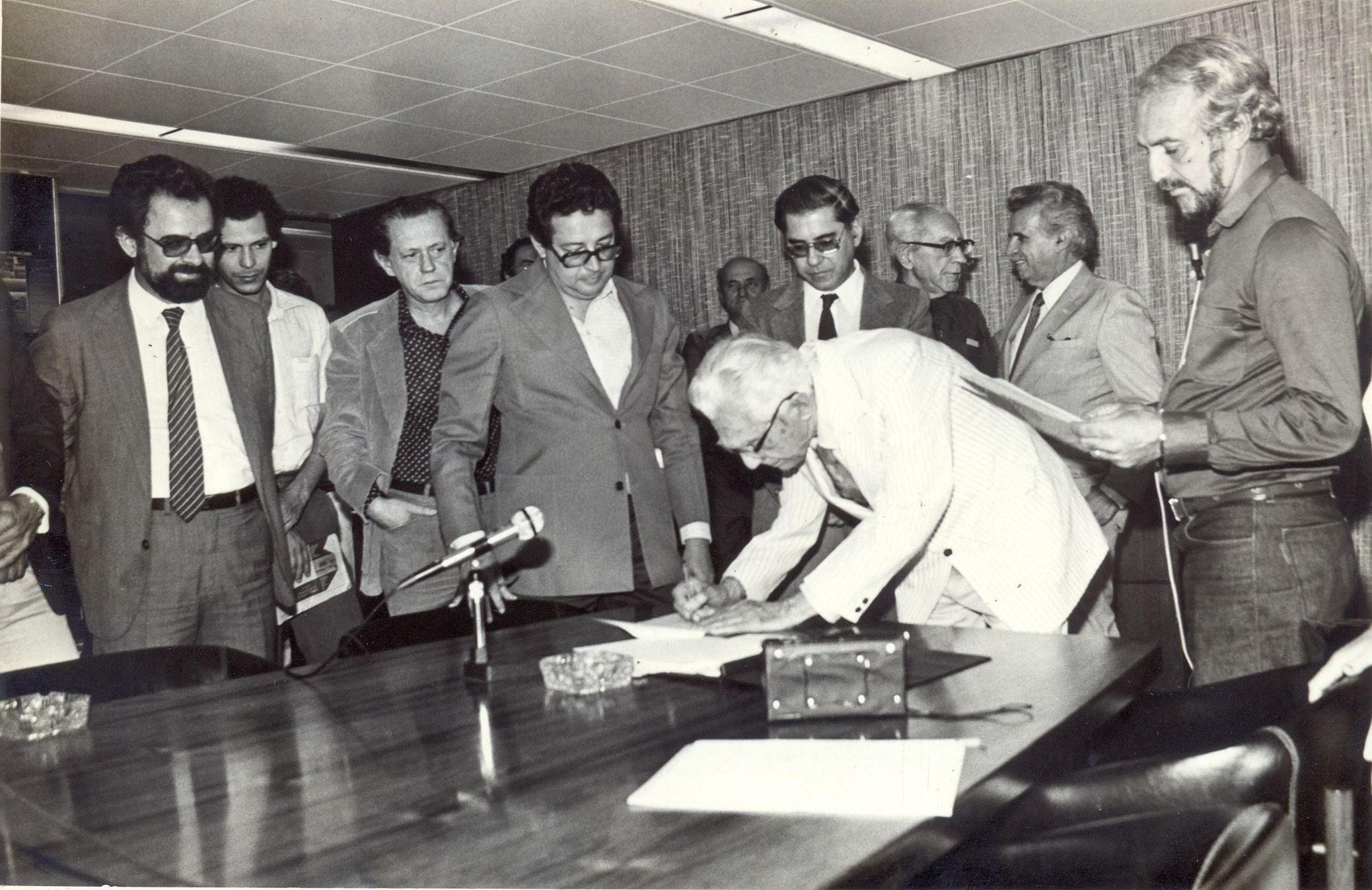 [Assinatura do convênio entre a FJP e o Centro Audio-visual da UFMG, para execução do Projeto "Memória Histórico-Fotográfica do Sul de Minas Gerais - 1870/1930"]