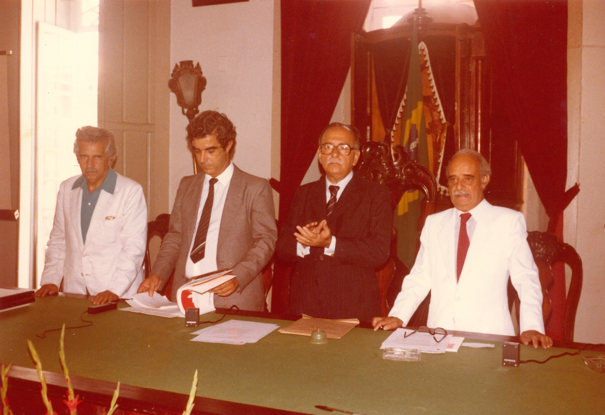 | dc.description | Seminário "Diretrizes para o Desenvolvimento da Estrutura Urbana e Preservação do Centro Histórico de São João Del Rei", promovido pela Fundação João Pinheiro (FJP), no salão nobre da prefeitura, para a entrega de projeto, do mesmo nome elaborado pela FJP. A partir da esquerda: Aluísio Pimenta, presidente da FJP; Ronaldo Costa Couto, secretário de Planejamento; José Aparecido de Oliveira, secretário de Cultura e Geraldo Cid de Castro Valério, prefeito da cidade. | pt_BR |