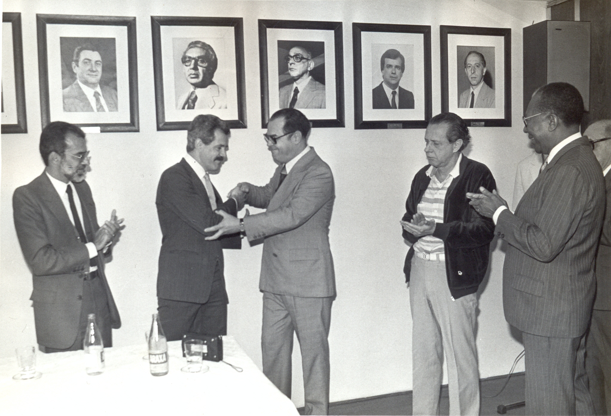 Solenidade de transmissão do cargo de presidente da Fundação João Pinheiro (FJP), para Hindemburgo Chateaubriand Pereira Diniz, no salão nobre da FJP, por Carlos Eduardo Côdo Aroeira, presidente em exercício. Vê-se a partir da esquerda: Carlos Eduardo Côdo Aroeira; Luiz Alberto Rodrigues, secretário Estadual do Planejamento; Hindemburgo Chateaubriand Pereira Diniz; Affonso Célso Ávila e Raimundo Cândido.