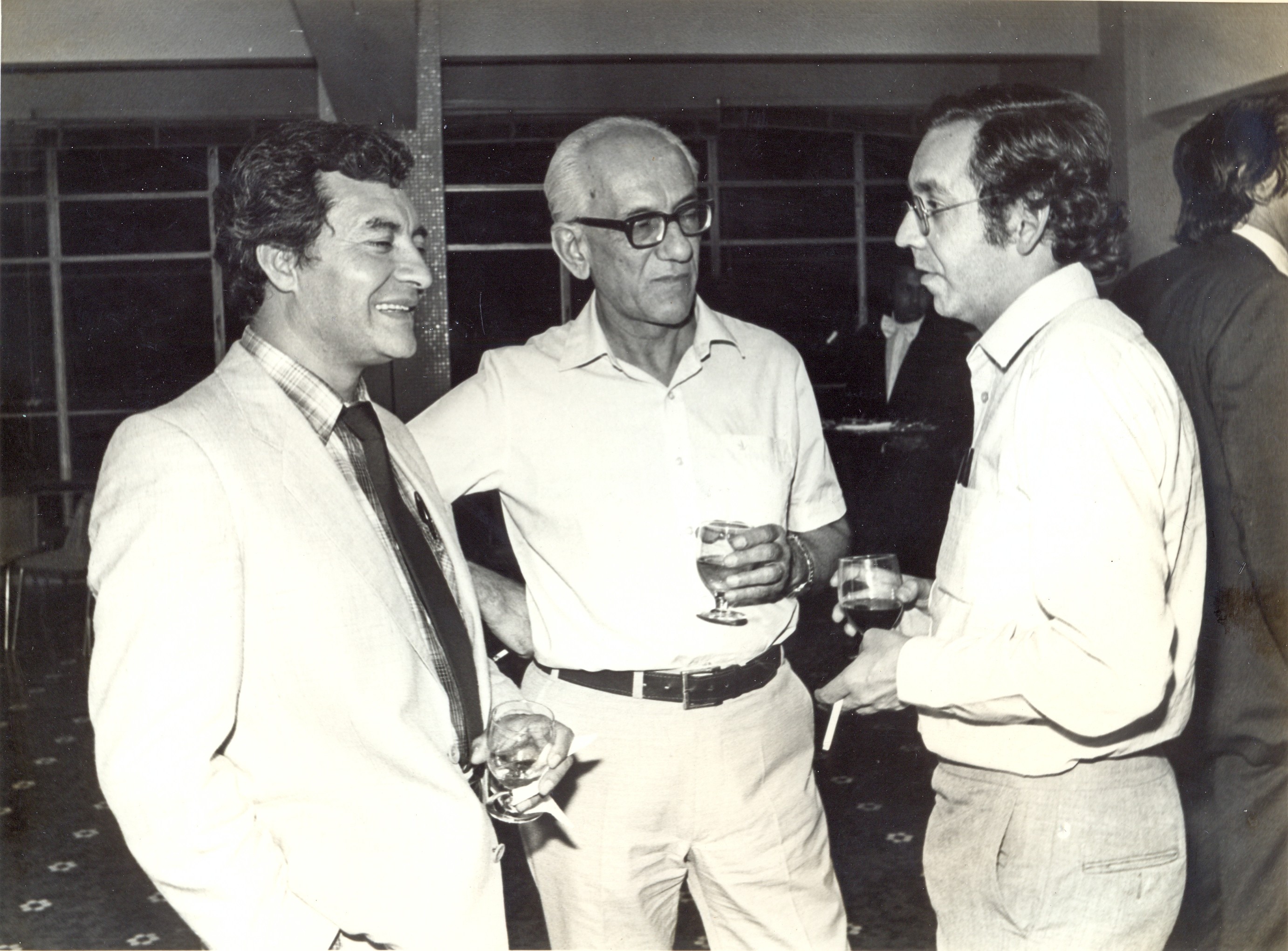 Alejandro Moya, Amilcar Oscar Herrera, da Universidade Estadual de Campinas de São Paulo (UNICAMP/SP) e Herman Jaramillo Salazar, da Colômbia, por ocasião do Seminário "Energia: Tecnologia e Planejamento" promovido pela Fundação João Pinheiro (FJP), a Organização dos Estados Americanos (OEA) e o Conselho Nacional de Desenvolvimento Científico e Tecnológico (CNPq), e realizado no Centro de Desenvolvimento em Administração (CDA) da FJP.