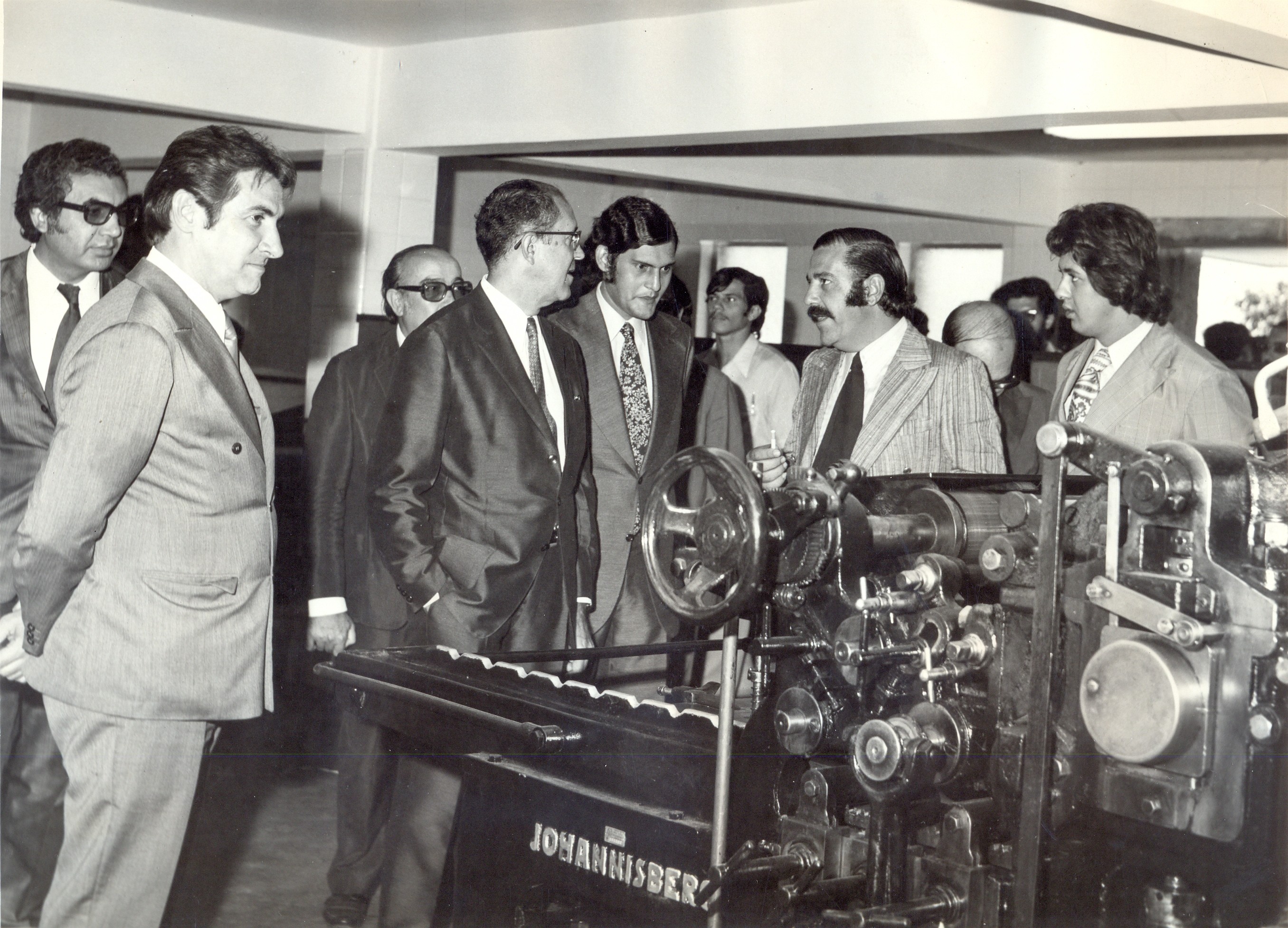 Inauguração da gráfica da Fundação João Pinheiro (FJP). Vê-se Luis de Oliveira Castro, presidente Fundação João Pinheiro (FJP); Clodoaldo da Cunha Bonfim, Paulo José de Lima Vieira, secretário do planejamento; Roberto Lúcio Rocha Brant, subsecretário do planejamento; Virgílio Horácio de Castro Veado, Leonardo Fulgêncio, entre outros.
