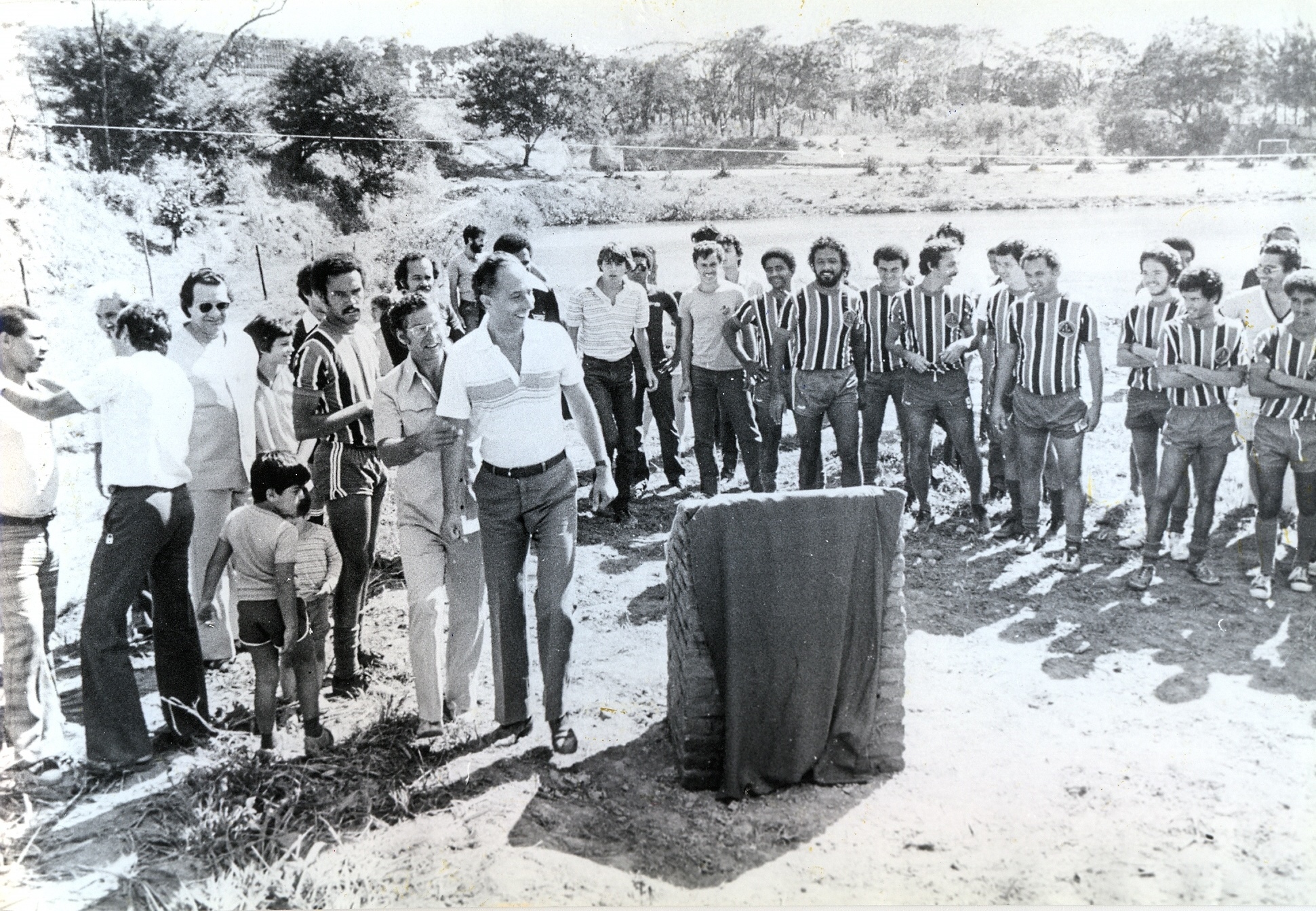 | dc.description | Inauguração do campo de futebol da área recreativa da Associação de Empregados da Fundação João Pinheiro, em 09 de maio de 1981. Vê-se, da esquerda para a direita, em primeiro plano, Wladimir Dias Ferraz (4º); Antônio de Pádua Pinto Fernandes (5º); Alnir Marco Schreiber (6º); Carlos Maurício de Carvalho Ferreira (8º), presidente da Fundação João Pinheiro. Em segundo plano, Wandair Ramos de Oliveira (4º), vestindo uniforme de time de futebol; Olímpio Ferreira (5º); Antônio Gonçalves de Oliveira (6º); Alencar Santos Viana Filho (7º); Itamar Carlos Augusto (9º). | pt_BR |