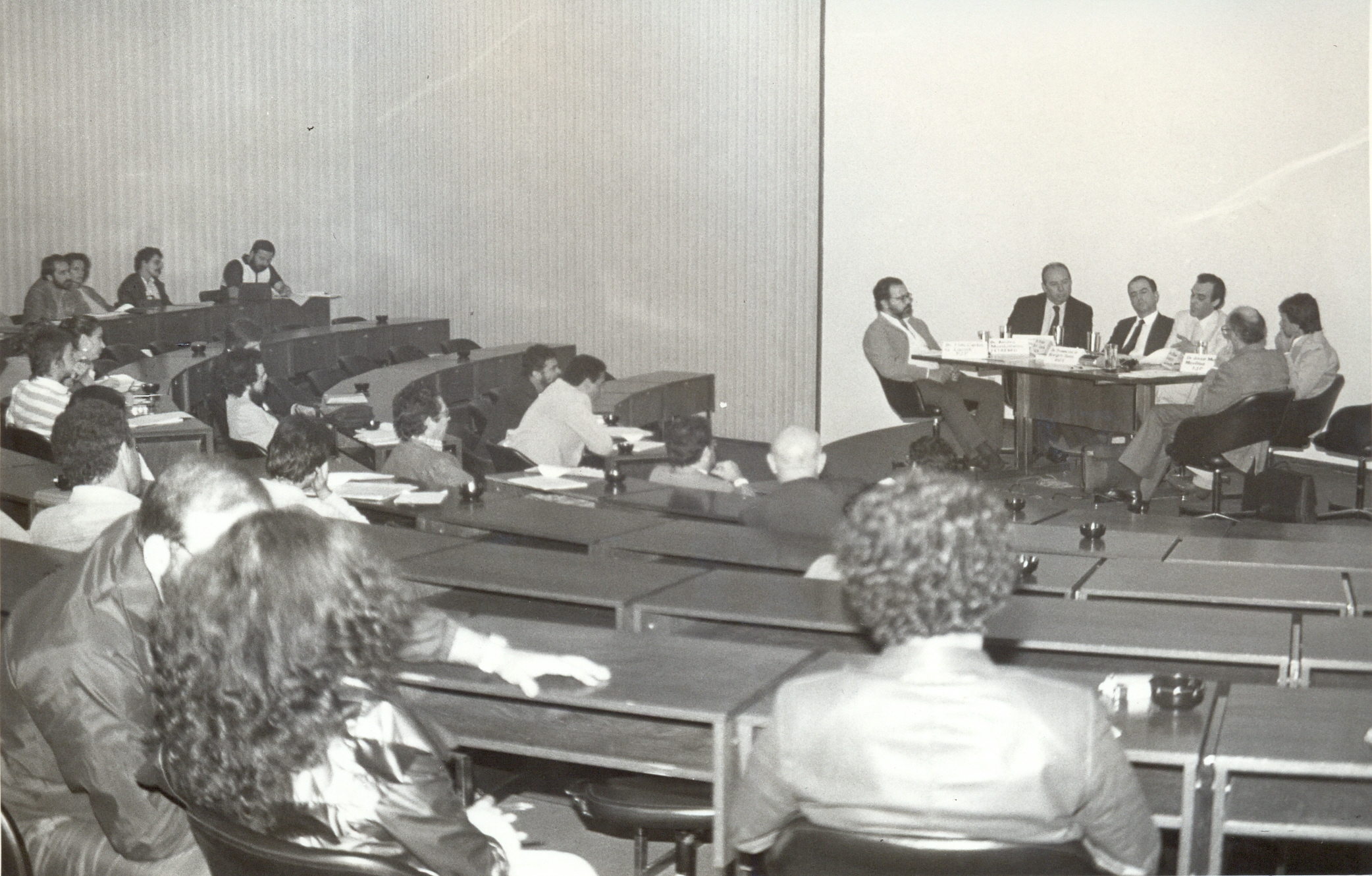 Painel promovido pela Fundação João Pinheiro (FJP) e o Instituto Latino-Americano de Desenvolvimento Econômico e Social (ILDES) sobre "Pacto Social na América Latina" no Centro de Desenvolvimento em Administração (CDA). Vê-se os debatedores e a platéia.