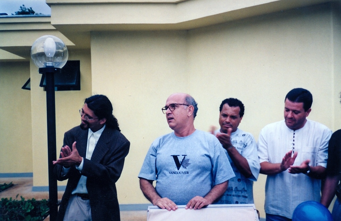 Inauguração da Sauna da Área recreativa da Associação de Empregados da Fundação João Pinheiro. Vê-se, de esquerda para a direita, Eustáquio Mário Ribeiro Braga; Luciano Amorim Borges; Nilson Rodrigues de Sousa e João Martinho de Carvalho.