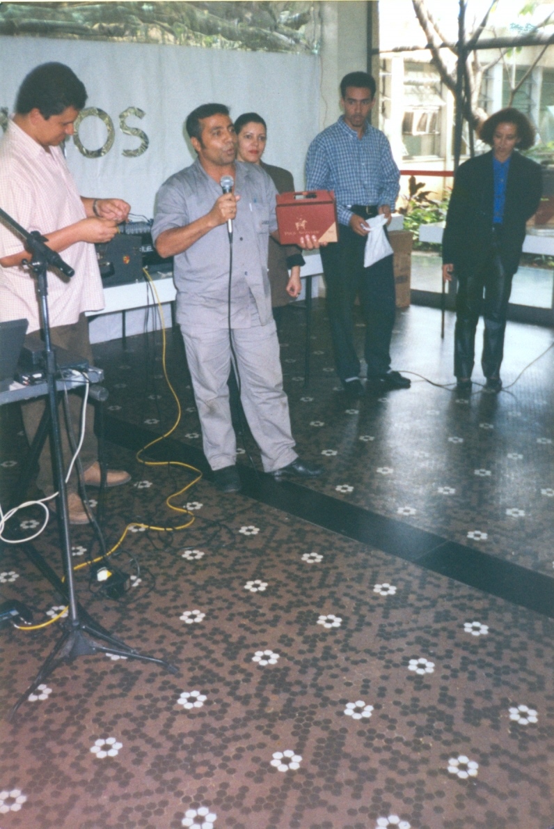 Aniversário de 25 anos da Associação de Empregados da Fundação João Pinheiro, no restaurante da Fundação João Pinheiro (campus Pampulha). Vê-se, da esquerda para a direita, Maria do Rosário Gomes Gonçalves (3º); Ângela Maria Reis (5º).
